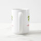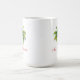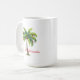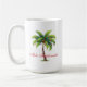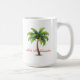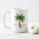 Tasse à café en blanc à l'intérieur rouge, avec imprimé de palmiers de vacances. Un texte dit Joyeux Noël à l'hawaïenne Mele Kalikimaka. Taille 15 oz. Customiser cette tasse ou acheter tel quel.
