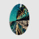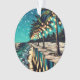 Joli art côtier Ai romantique représentant une rangée de palmiers avec des lumières blanches illuminées. Une jolie réflexion sur la plage de sable et les vagues.