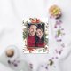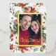 Joyeux Noël Elegant Gold Foil Carte de vacances. Cette élégante carte photo de Noël présente un cadre magnifique de verdure aquarelle peinte à la main, des fleurs et des baies avec un cadre et un script en or réel. Le dos comprend un motif fantaisiste. Trouvez les articles correspondants dans la collection de Poinsettia de Noël.