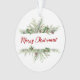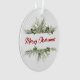 Bright Red and Green Framed Holiday Ornement de voeux avec branches À feuillage persistant de sapin de Noël, cônes, baies et phrase personnalisable "Joyeux Noël" vous pouvez passer à "Bonne année" ou "Joyeuses Fêtes" et autres. Plus de cartes de voeux de Noël que vous pouvez trouver dans mon magasin Zazzle Patternnumerepics ou m'écrire e-mail à t.dyomushkina@gmail.com, si vous avez besoin d'un design spécial.