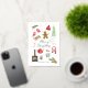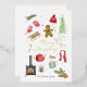 Belle carte de vacances avec de belles aquarelles de Noël dessinées à la main, des biscuits en pain d'épice, un pin, des éléments cosy comme une tasse de cacao chaud, mitaines chaudes, casquette et foulard, théière, flocons de neige, traîneau à bois, feuillage de Noël, cadeaux de Noël, sucres de canne et plus Une partie du texte est modifiable. Le libellé "Joyeux Noël" est en or de feuille d'or pressé en or réel.