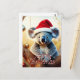 koala australien assis dans un arbre à gosses portant un chapeau santa. Ce koala furry est originaire d'Australie, ils sont facilement reconnaissables par leur corps stout, sans queue et grande tête avec des oreilles rondes et moelleuses et un nez gros en forme de cuillère.