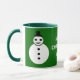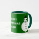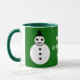 Cette tasse festive amusante ferait un grand cadeau pour maman. Il dispose d'un bonhomme de neige blanc et souriant de Noël avec des boutons noirs et un chapeau haut. Il a l'air d'un agent cool et aimerait vous aider à répandre la joie de Noël cette année. L'arrière - plan est un vert festif. L'image est des deux côtés de la tasse. Entre les est le message "Joyeux Noël maman, ce texte est personnalisable afin que vous pouvez transformer ceci en un joli cadeau personnalisé pour votre maman ou une autre relation ou ami. Le design est montré sur une tasse verte et blanche de style rond, mais est également disponible sur de nombreux autres styles et couleurs de tasse, y compris de belles tasses en verre dépoli et des tasses de voyage commode pour garder les boissons chaudes au chaud pendant l'hiver.