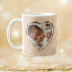 Faites de cette saison des Fêtes un moment spécial avec notre tasse de Noël personnalisée pour maman! Doté d'un magnifique arrière - plan de flocon doré et blanc, ce mug festif présente une photo en forme de coeur de votre bébé, ajoutant une touche personnelle et chaleureuse. Les mots Merry Christmas maman est affiché, ce qui en fait un cadeau parfait qui combine la chaleur, l'amour, et la joie de vacances.