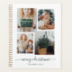 Ce planificateur simple mais ultra moderne dispose de quatre de vos photos personnelles préférées dans une grille de photos à look unique et superposé. Le design de couverture verte et blanche de la forêt dit "joyeux noël" dans élégante et tendance typographie manuscrite, et a une place pour votre nom dans une coordination sans serif police.