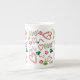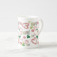 jolie porcelaine, bonne dimension effet brillant bien dans l'ensemble. Le motif et les couleurs sont réussis.Je trouve néanmoins dommage de ne pas occuper tout l'espace avc le motif car la partie rouge au dos de la tasse est trop présente et pas intéressante visuellement.