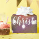 Joyeux Noël stylisée typographie blanche, avec des lumières de Noël vertes, jaunes et blanches vibrantes et un arrière - plan coloré orange, violet, rouge et noir répétant le design motif pour votre joie festive.