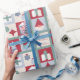 Joyeux Noël ! papier d'emballage en rouge + bleu + vert combo couleur ! Faites ressortir vos prochains cadeaux de vacances avec cette belle trousse d'emballage!