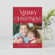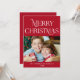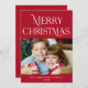 Carte de vacances moderne photo rouge saisonnier. "Joyeux Noël" est écrit dans une élégante typographie blanche. Personnalisez avec une photo de famille, votre nom et votre année.