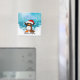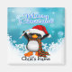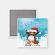 Joyeux Noël Penguin Magnet Carré dispose d'un arrière - plan turquoise décoratif avec de la neige et des flocons de neige, un Happy Penguin tenant un sucre de canne coloré portant un chapeau de Père Noël. Le texte décoratif bleu et blanc est Joyeux Noël. Il y a du texte configuré pour le nom de votre enfant ou tout texte que vous voulez. Un cadeau parfait pour le rembourrage de Noël! Cette conception a été créée à l'aide de artwork©delightful-doodles.com (http://delightful-doodles.com/) original
