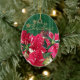 Quel beau ornement de Noël c'est ! Le sucre de canne poinsettia semble si joli contre l'arrière - plan à motifs verts, et le texte "Joyeux Noël" en or a peu d'embellissement perle.