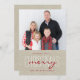 Linen Beige Rustic Joyeux Carte photo de Noël avec un design moderne simple et propre. Elke Clarke © Texte à la main rouge et blanc