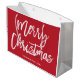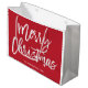 Joyeux Noël simple sacs cadeau rouge et blanc avec texte changeant - vous pouvez changer le nom de famille et l'année.