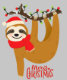 Ce design présente une paresse festive accrochée à une branche d'arbre avec le texte moderne "Joyeux Noël" typographie rouge populaire. #noël #fêtes #fête #paresse #animaux #mignon #saisonnière #mode
