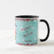 Sur cette tasse, un heureux bonhomme de neige est habillé dans son chapeau et son foulard sur un subtil arrière - plan de flocon de neige bleu et blanc. En haut et en bas, il y a des bordures de confettis rouges. Le texte rouge de chaque côté indique "MERRY & BRIGHT", et le nom de votre enfant est en gris en bas sur un côté. Idéal pour les enfants de tous âges !