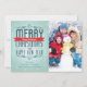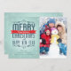 Joyeux Noël, fêtes heureuses et bonne nouvelle année vintage typographie mise sur un arrière - plan bleu sombre avec des flocons de neige