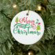 Célébrez vos vacances de Noël en faisant bonne humeur avec cet ornement en céramique. Le design présente une jolie typographie ornementale avec des arbres de Noël, un chapeau de Père Noël et des feuilles. Les belles couleurs de Noël et les polices modernes font du design classique.