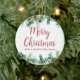 L'ornement en céramique de Noël présente une belle aquarelle feuillage d'hiver avec "Joyeux Noël" dans une police de caractères magnifique. Ce design minimaliste, simple et élégant aura l'air magnifique accroché à votre arbre ou où que vous souhaitiez le placer. Veuillez consulter la collection de Noël Foliage Holiday pour plus d'articles.