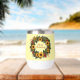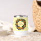 Barware de Noël personnalisé avec une couronne unique de saint et de tournesols. Un verre de vin de Noël enjoué, un cadeau de Noël unique pour égayer votre table en cette période de fêtes.
