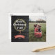Accueillez famille et amis avec cette carte postale de vacances rustique et de style occidental. Caractéristiques "Joyeux Noël Y'all" en typographie audacieuse et une couronne dessinée à la main de cônes de pin et de feuilles. Texte blanc sur un arrière - plan à grains de bois noir. Affichez une photo festive sur la droite. Personnalisez cette carte postale de vacances dès aujourd'hui !