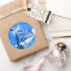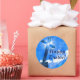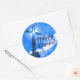 Image d'art original d'une croix d'église avec un effet d'éclatement d'étoile sur le ciel bleu avec texte "Bonne Pâques !". Cette version est tout en tons bleus avec des nuages blancs. Modifiez facilement le texte pour customiser. Un autocollant inspirant pour Pâques et à tout moment de l'année. Disponible dans la grande forme ronde populaire comme indiqué et aussi disponible comme la taille plus petite autocollant joint.