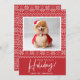Cette modèle est une façon moderne et élégante de partager un accueil de vacances. Il présente un design festif rouge et tricoté Christmas Sweater avec un message "happy pawsome holiday" dans la calligraphie moderne sur un arrière - plan rouge. Ajoutez simplement votre photo préférée de votre chien et votre texte personnalisé pour compléter la carte.