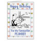Caricature en plomberie et en plomberie. Le plombier travaille dans une inondation et est surveillé par un poisson. Personnalisez avec vos propres détails et message. Carte d'anniversaire pour un plombier ou un chauffeur.