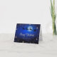 Une belle carte de Noël du Père Noël bleu neigeux avec une scène hivernale avec le Père Noël et le renne, des flocons de neige, des étoiles et de la neige tombant sur le devant et des flocons de neige et des étoiles à l'intérieur. Personnalisez facilement cette carte bleue de Noël enneigée avec votre nom de famille et votre texte.
