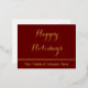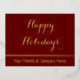 Happy Holidays apparaît dans un élégant script or sur cette carte de vacances rouge foncé. En bas, il y a du texte d'affichage supplémentaire que vous pouvez modifier pour afficher le nom de votre société. Tout le texte est doré et peut être édité.
