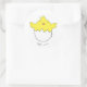 Cet autocollant est imprimé avec un petit poulet à la main, heureux et partiellement haché.