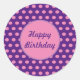 Joyeux Stickers ronds Poka Dot Anniversaire (Viole