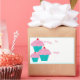 Rectangle peel et étiquette cadeau de bâton a White arrière - plan avec des cupcakes multicolores et un joyeux anniversaire écrit. Customiser ou acheter tel quel. Image stock