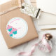 Arrondi peel et bâton étiquette cadeau a arrière - plan blanc avec des cupcakes multicolores et un joyeux anniversaire écrit. Customiser ou acheter tel quel. Image stock