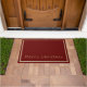 Tapis de porte avec un arrière - plan rouge bordeaux, argenté et doré, encadrant le tapis de porte et l'expression "Joyeux Noël" dans un texte optimisé en or près du fond du mat. Customisez cet objet ou achetez tel quel.