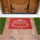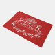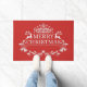 Tapis de porte avec un arrière - plan rouge et une empreinte festive de Joyeux Noël. Customisez ce tapis ou achetez tel quel.