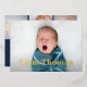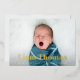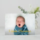 Les annonces de naissance modernes et élégantes présentent votre photo préférée de nouveau-né en plein saignement, avec le nom du bébé recouvert de papier doré. Personnalisez avec les statistiques de naissance du bébé sous. Ajoutez trois photos supplémentaires au dos dans une mise en page collage, avec les noms des parents ou de la famille au centre.