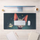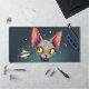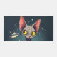 This playful cartoon illustration features a hairless Sphynx cat with wide yellow eyes and a curious judging expression, set in a whimsical space scene. The gray body with pink accents contrasts beautifully against a dark teal starry sky, while a small UFO adds a fun extraterrestrial touch. Clean lines, flat colors, and a friendly sci-fi vibe make this design perfect for Sphynx cat lovers who enjoy space humor and quirky cartoon art.