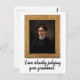 Cette carte postale présente une reproduction d'un vieux portrait/tableau, avec la femme disant : "Je juge ta grammaire en silence."