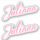 Juliana nom dans la police de script cursive en joli rose x2. Deux copies du nom.