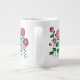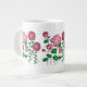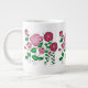 Whimsical pink flowers adorn this ceramic 20 oz. mug! Perfect for those who like a JUMBO portion of their servings! Great for hot beverages, soup, ice cream or cereal too! Microwave and dishwasher safe, the vibrant colors will last a long time!!