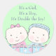 Un design sucré avec une petite fille et un garçon dans leur petit lit décoré d'un pare-chocs rose et bleu. Une image très mignonne pour accueillir des jumeaux !