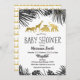 Boy Safari Wild Animals Baby shower carte d'invitation avec arrière - plan noir, confettis d'or et feuilles tropicaux monstères.