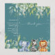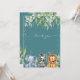 Célébrez l'arrivée imminente d'un petit avec cette invitation pour une Baby Shower Safari sur le thème des Animaux de la Jungle ! Avec un fond sarcelle et de verdure, ce design adorable met en vedette de mignons animaux de safari aquarellés comme l'éléphant, le lion et le zèbre, apportant une touche sauvage et fantaisiste à votre célébration. Parfait pour une baby shower neutre en termes de sexe, cette invitation mélange les vibrations de la jungle tropicale avec des détails aquarelles élégants, ce qui en fait un excellent choix pour toute baby shower sur le thème du safari ou de la jungle. Personnalisez-la avec les détails de votre événement pour créer un souvenir unique pour votre journée spéciale !
