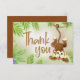 Carte "Merci" mignonne pour votre baby shower bébé Jungle. Un singe heureux se déplace des branches tropicales de la forêt tropicale. Le verso de cette carte vous permet d'ajouter votre propre message, soit un message personnel pour chaque invité, soit un message unique que vous enverrez à tous vos invités. Si vous souhaitez ajouter un message manuscrit, vous pouvez modifier la couleur arrière - plan de votre carte pour la rendre plus facile à lire.