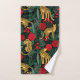 Impression de jungle exotique sur un arrière - plan noir. Particulièrement belle avec des roses rouges.