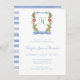 Cet adorable petit garçon sirote et voit l'invitation serait parfait pour présenter votre nouveau bébé doux à la famille et aux amis. Il a une crête d'aquarelle monogrammée bleue entourée de plantes et d'animaux de la jungle, votre paquet de la première initiale et nom de la joie, et une aquarelle bleue coordonnatrice rayée en arrière. C'est unique et précieux.