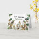 Carte d'anniversaire adorable sur le thème du safari, avec de mignons animaux de la jungle, des ballons festifs et une aquarelle rustique. Objets correspondants disponibles dans notre magasin!