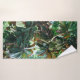Photo de billets verts dans la forêt tropicale. Au premier plan, un immense Croton arboré de grands feuilles décoratifs lumineux.