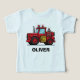 This personalized junior fire chief shirt features a custom red tractor equipped with emergency sirens, flashing lights, and a heavy-duty fire engine aesthetic.