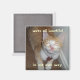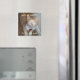 junipurr pose avec son visage de marque sur un aimant
